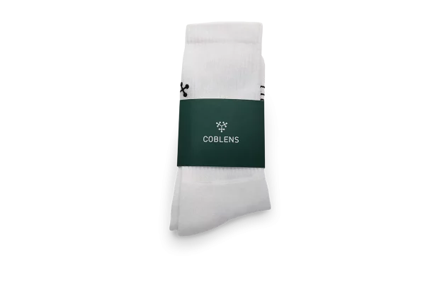 Socks FLAT-WHITE. Für Damen & Herren Farbe “Flat White” erhältlich in zwei Größen, 38-42, 43-46. Super bequemer sportlicher Schnitt mit eingewebten Logo und Details, edles Rippenmuster, weiche Haptik, 80% Baumwolle, 18% Nylon, 2% Elastan. Hergestellt in Portugal.COBLENS Quality Warranty